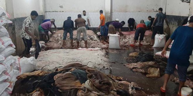 বাংলাদেশ প্রতিনিয়ত ডেস্ক: রাজধানীর লালবাগের পোস্তার আড়তগুলোতে কোরবানির পশুর চামড়ার জমজমাট বেচাকেনা চলছে। বৃহস্পতিবার (২৯ জুন) বিকেল থেকে আড়তগুলোয় দেশের বিভিন্ন স্থান থেকে চমড়া আসতে থাকে। শুক্রবার (৩০ জুন) সকালেও চমড়া ভর্তি প্রচুর ট্রাক ও ভ্যান আসতে থাকে।