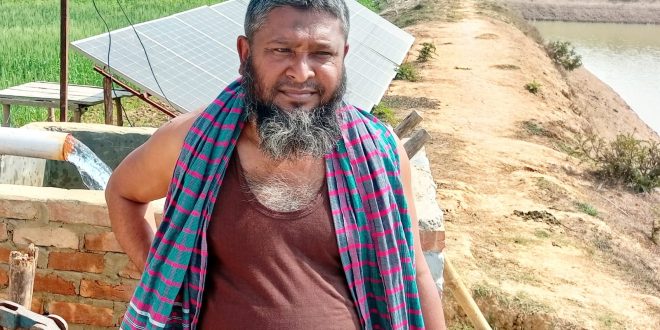 আকতার হোসেন বকুল পাঁচবিবি(জয়পুরহাট)প্রতিনিধি :নিরবিচ্ছিন্ন বিদ্যুতের প্রয়োজনে জয়পুরহাটের পাঁচবিবির সীমান্তবর্তী ভীমপুর মাঠে বিশাল সোলার প্যানেল স্থাপন করে আলু ও মাছ চাষ করছে একজন চাষী। সাড়ে ৪’লক্ষাধিক টাকা খরচ করেও সার্বক্ষণিক প্রয়োজন মাফিক বিদ্যুৎ উৎপাদন না হওয়ায় ব্যাহত হচ্ছে মাছ চাষের পাশাপাশি অন্যান্য চাষাবাদ। বৈদ্যুতিক লাইনের মাধ্যমে গভীর নলকূপের সাহায্যে পানি সরবরাহের উদ্যোগ নিলেও সীমানা জটিলতায় তা বন্ধ হয়ে যায়। সেচ লাইসেন্স পেতে সরকারি অফিস ঘুরেও কাজের কাজ হচ্ছে না। মাছ চাষের পাশাপাশি কৃষি ফসল উৎপাদনে গভীর নলকূপ স্থাপন প্রয়োজনীয় ব্যবস্থা গ্রহণে উপজেলা প্রশাসনের প্রতি অনুরোধ করেন ভুক্তভোগী এ চাষী।