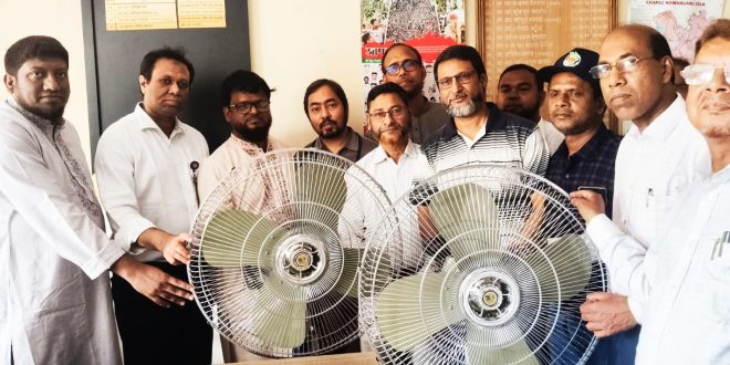 মানবিকতার উজ্জ্বল দৃষ্টান্ত স্থাপন করে “মানুষ মানুষের জন্য” এই প্রত্যয়ে চাঁপাইনবাবগঞ্জ সদর হাসপাতালে রোগীদের সেবার মান উন্নয়নে সহায়তা হিসেবে দুটি পাক ফ্যান প্রদান করেছে নবাবগঞ্জ জেলা কলেজ শিক্ষক-কর্মচারী কল্যাণ সমিতি “নজেকশিস”