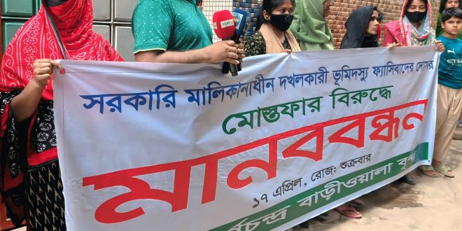 রাজধানীর পুরান ঢাকার সুত্রাপুর এলাকায় সরকারি হেরিটেজ সম্পত্তি দখল এবং অবৈধভাবে ভবনের দ্বিতীয় তলা নির্মাণের অভিযোগে মোস্তফা নামের এক ব্যক্তির বিরুদ্ধে মানববন্ধন করেছেন স্থানীয় বাসিন্দারা।